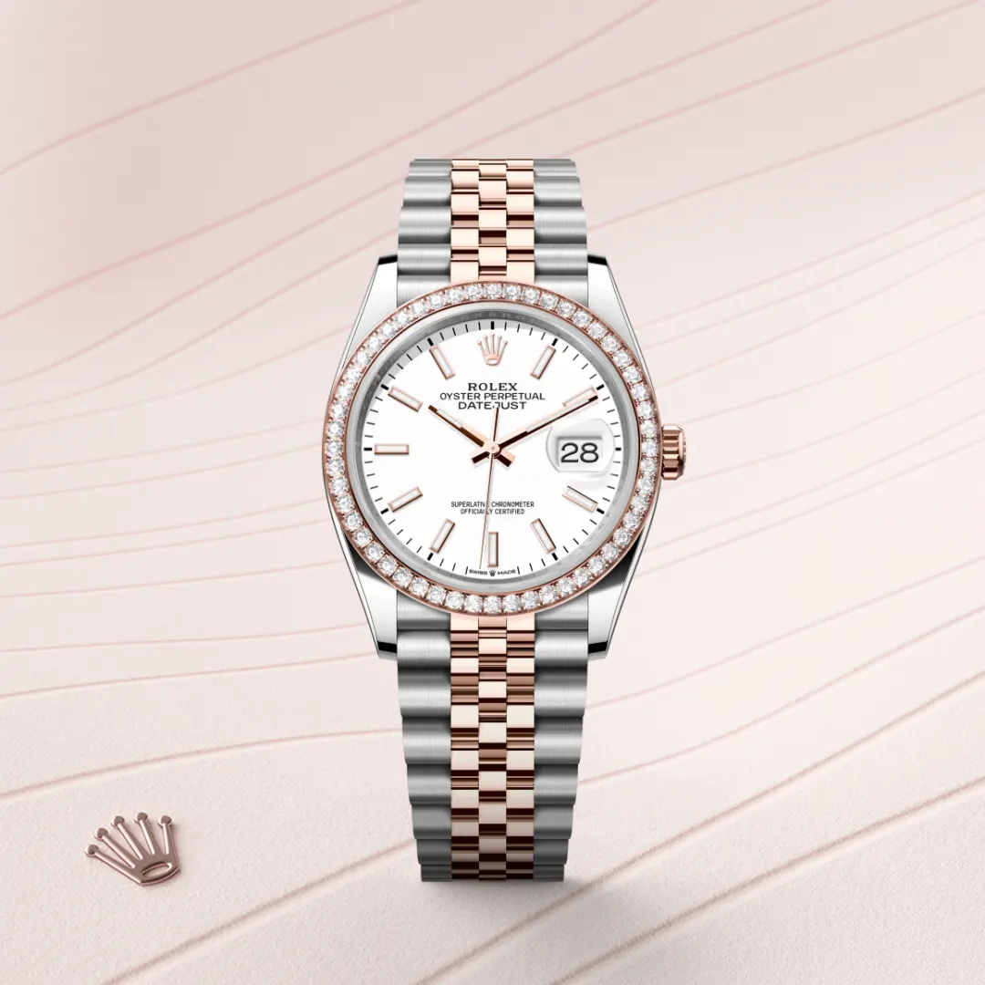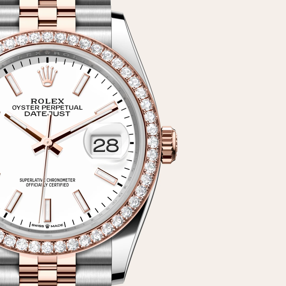 Entdecken Sie das Modell Rolex Datejust 36 mit einem Durchmesser von 36 mm in Rolesor Everose (Kombination aus Edelstahl Oystersteel und Everose-Gold) bei GADORO Stilreich, einem offiziellen Rolex Fachhändler, der zum Verkauf und zur Wartung von Rolex Armbanduhren berechtigt ist.
