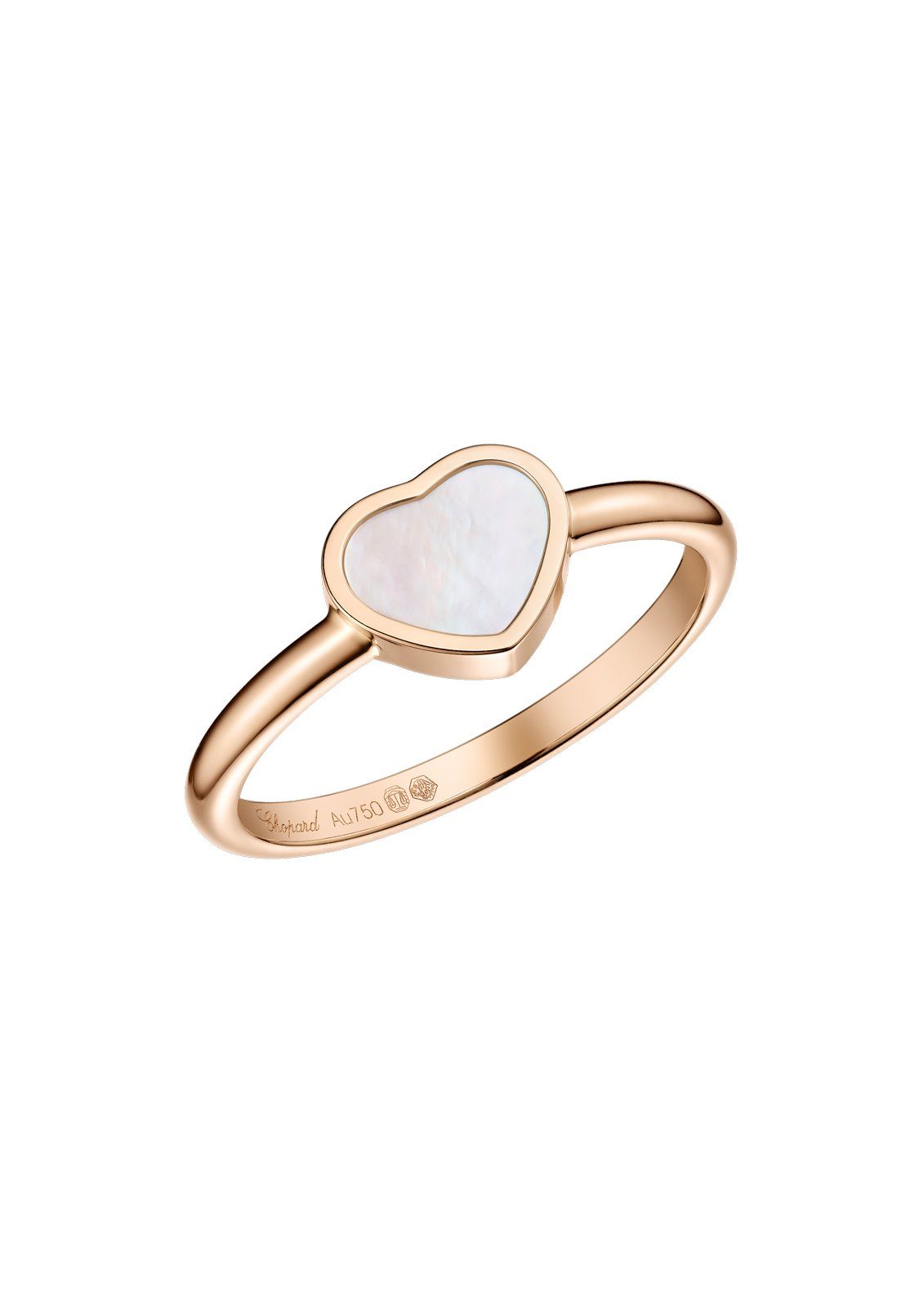 Ring, ethisches Roségold, Perlmutt - Die Schmuckkollektion My Happy Hearts übernimmt die bekanntesten Designcodes der legendären Chopard-Kreationen: das Herz und die beweglichen Diamanten.