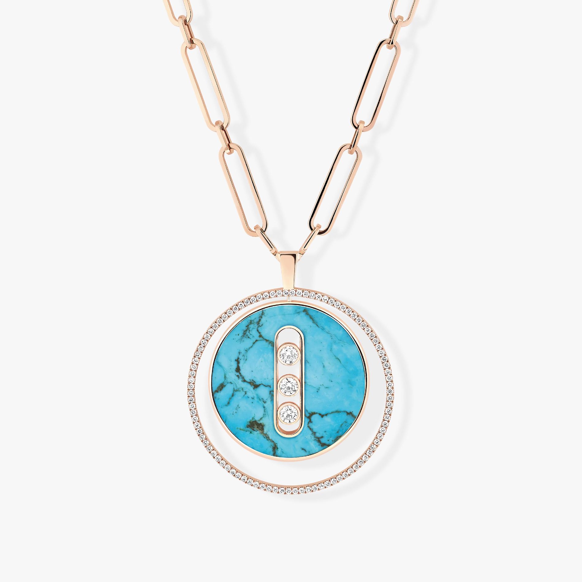 Ihre Freiheit ist Ihr größtes Gut? Fordern Sie sie ein! Zeigen Sie sie mit der langen Lucky Move Diamantkette aus Roségold mit wunderschönem Türkis. Be free – so lautet das Mantra in Verbindung mit dieser neuen Kreation voller Farbe aus der Lucky Move Schmuckkollektion. Das sanfte Roségold und die weißen Diamanten heben die prickelnde Lebendigkeit, die den Türkis auszeichnet, besonders hervor. Es ist unmöglich, dieser gewagten Farbpalette zu widerstehen. Der außergewöhnliche Durchmesser der Medaille macht diese Diamantkette zu einem einzigartigen Schmuckstück. Denn große Türkise sind besonders selten. Kein Zweifel, dass diese lange Diamantkette Ihr wertvollster Talisman werden wird. Das Luxusschmuckstück ist exklusiv in unseren Messika Boutiquen erhältlich.