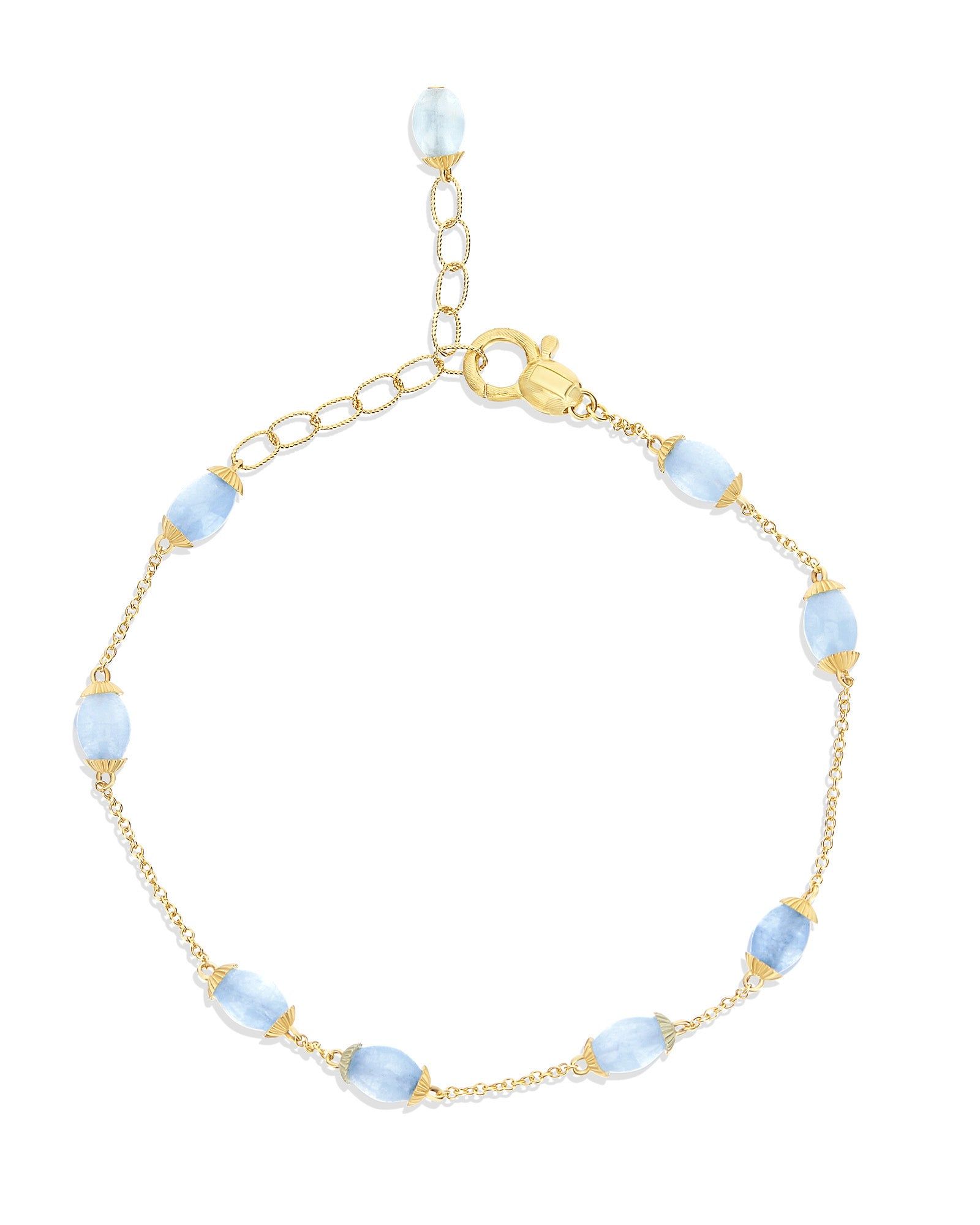 Aus unserer Gipsy Kollektion Terre Lontane entsteht dieses farbenfrohe Armband, welches zusammen mit den anderen Schmuckstücken der Kollektion von Reisen und Abenteuern an den ungewöhnlichsten Orten inspiriert ist. Ein unverzichtbares Armband aus 18kt Gold, bereichert durch Boules aus Aquamarin. Dieses zarte Juwel ist ideal, um mit der eng anliegenden Halskette der Kollektion Terre Lontane 'Azure' kombiniert zu werden.